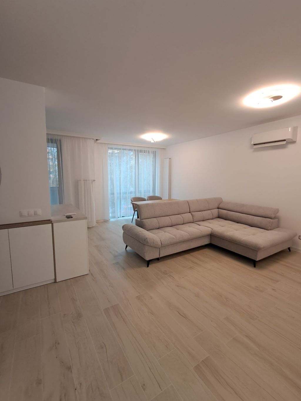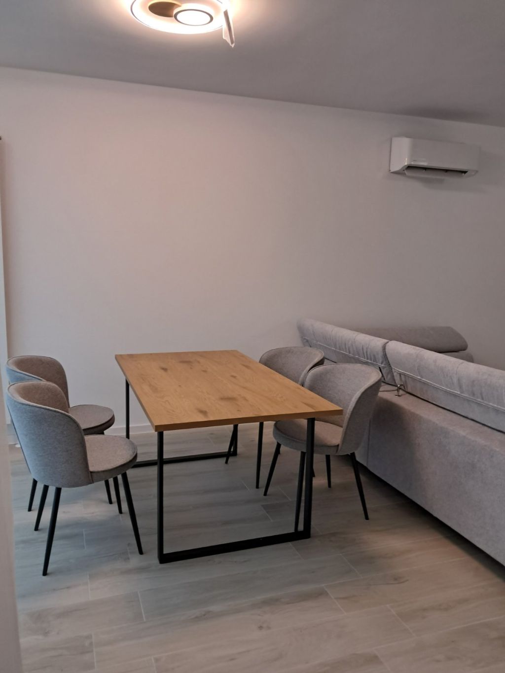 Апартамента е чисто нов , напълно обзаведен и оборудван. Състои се от внохдно антре, просторна дневна с трапезария и кукненски бокс, две спални като към едната има баня и тоалетна, отделна тоалетна и две големи тераси. Имота светъл и просторен.